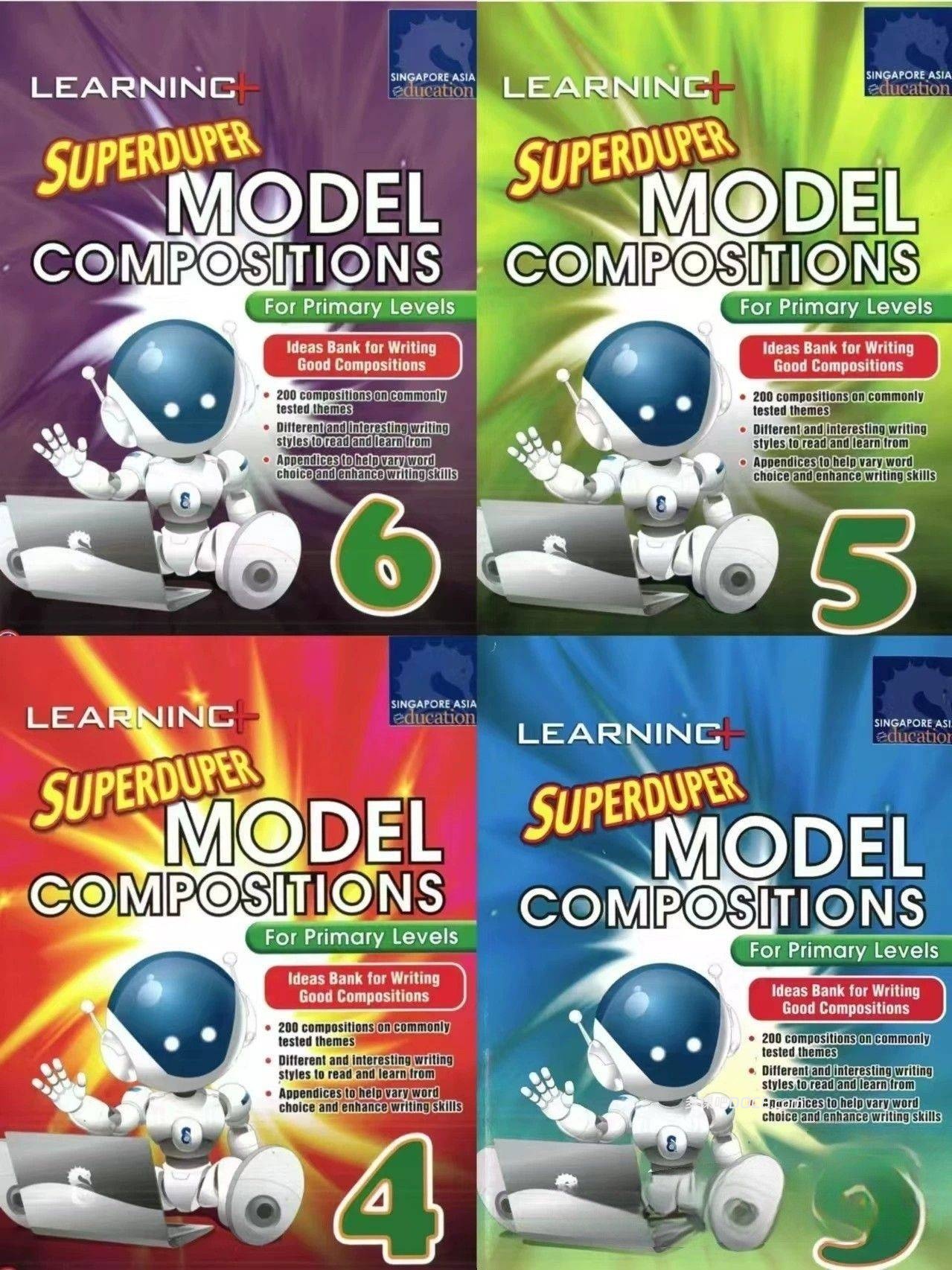 - 《Superduper Model Compositions》 是非常典型的新加坡式范文导向型写作辅助资源。它的优势在于提供了大量高质量的、符合本地考试要求的范例,让学生和家长清楚“好作文”的标准是什么,并通过模仿来快速提升写作表现,实用性和针对性极强。