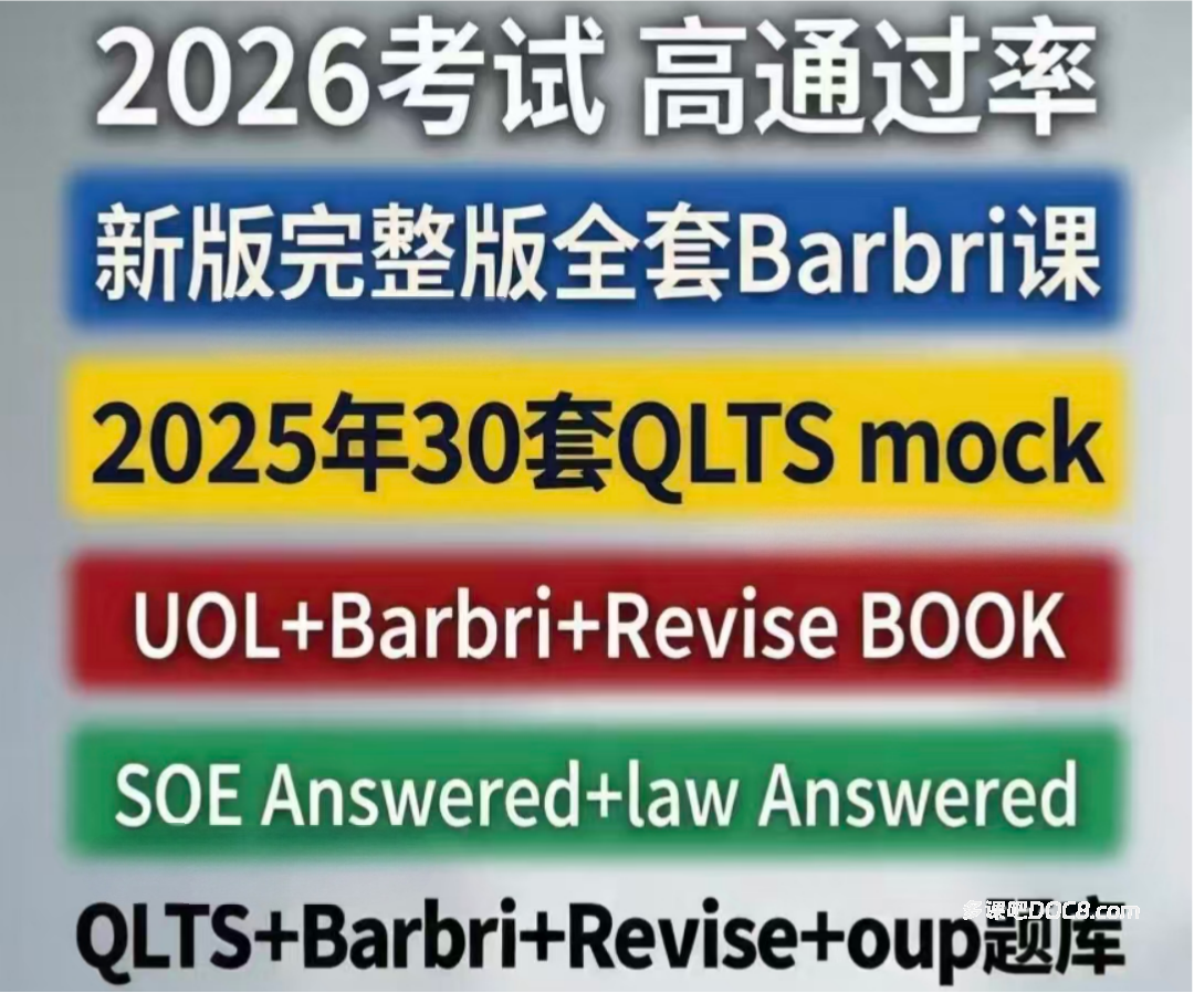 这套“UK SQE POWER PACK 2026”合集,正是为SQE1备考量身打造的“一站式武器库”,集合了市场上最主流的备考资源——Revise SQE、Barbri、UOL、QLTS、Law Answered、OUP六大机构的教材、笔记、视频和题库。